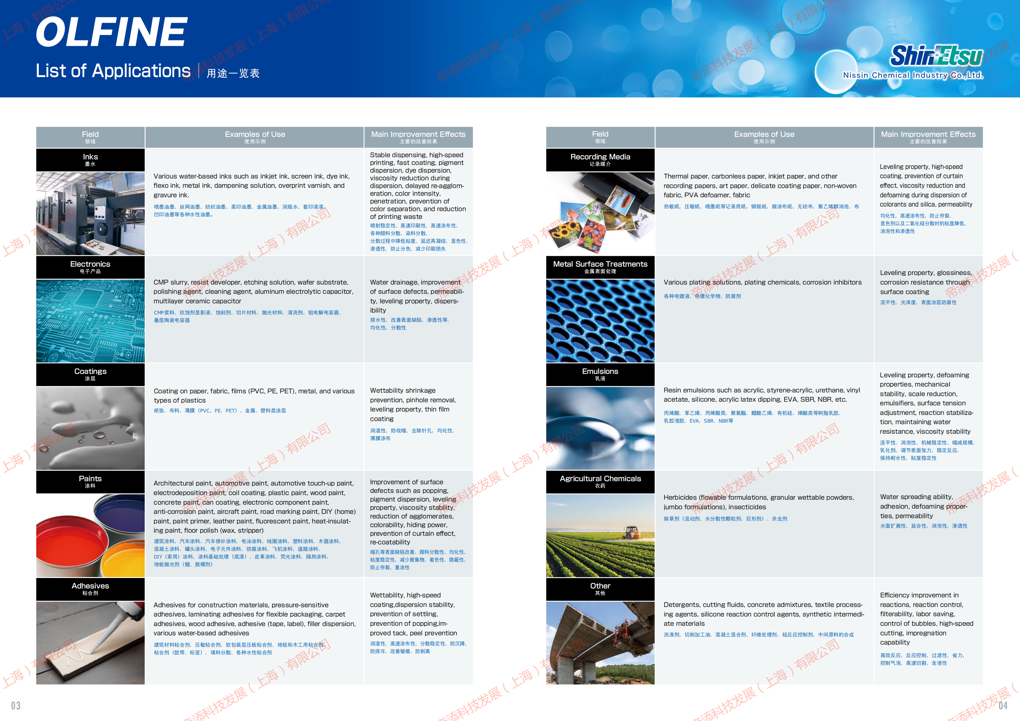 日信化學(xué)表面活性劑OLFINED-10系列,OLFINE E系列,OLFINE EXP系列,OLFINE PD系列,OLFINE WE系列, OLFINE Defoaming 系列等介紹。